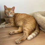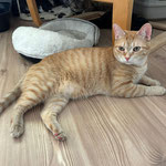 Ich, Amber, bin die hübsche orangefarbene Katzendame. Mit meiner mutigen und ausgeglichenen Art gebe ich meiner Tochter Sicherheit. Ich bin Menschen gegenüber freundlich und neugierig und gehe