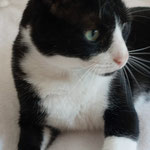 Mit anderen Katzen bin ich ehrlich und klar. Mit Katzenmädels komme ich gut zurecht, da bin ich freundlich und entspannt. Sehr große, dominante Kater liegen mir allerdings nicht – das brauche ich