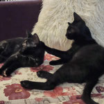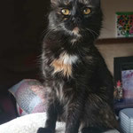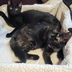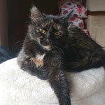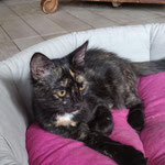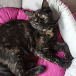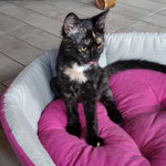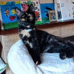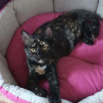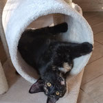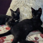 Ich, Barbara, bin ein hübsches Schildpatt-Mädchen mit neugierigem Blick. Mein Bruder Gianni trägt ein elegantes schwarzes Fell, das im Licht glänzt. Wir beide sind wahre Schmusekinder, die Nähe