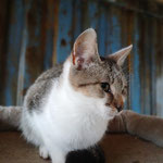 Mit anderen Katzen verstehe ich mich prima, und mit Fleur natürlich am allerbesten. Wir ergänzen uns perfekt: Sie bringt die Kuscheligkeit, ich den Mut. Falls ihr Platz für uns beide habt, würden