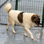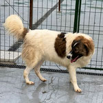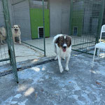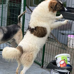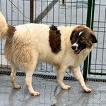 Hallo, ich bin Ethan – ein fröhlicher Rüde mit kuscheligem, weißem Fell und schokobraunen Flecken. Als Baby wurde ich zusammen mit meinen Brüdern auf einem Feld gefunden. Seitdem träume ich von