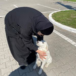 zusammenarbeitet, fand mich, als ich an ihrem Kloster zurückgelassen wurde. Dank ihr bin ich jetzt in Sicherheit und bin nun bereit, meine eigene Familie zu finden 🐶🍀