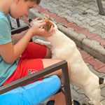Angst vor Menschen – im Gegenteil: Ich finde sie ziemlich spannend! Ich liebe es, gestreichelt zu werden, zu spielen und meine Umgebung zu erkunden. Neues macht mich manchmal kurz unsicher, aber