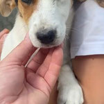 Ich bin ein fröhlicher, verspielter Welpe mit einem weichen Blick und einem Herzen, das sich nichts sehnlicher wünscht als Geborgenheit. Auch wenn mein Start ins Leben schwer war, habe ich keine