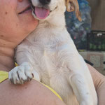 Später werde ich ungefähr mittelgroß sein – also genau richtig, um dich auf Spaziergänge zu begleiten, mit dir zu kuscheln oder einfach gemeinsam im Gras zu liegen. Ich verstehe mich gut mit