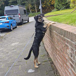 Draußen bin ich ein fröhlicher Entdecker! Wenn ich andere Hunde sehe, bin ich voller Freude und Neugier – am liebsten würde ich gleich hinflitzen und mit ihnen spielen. Ich kann eben kaum
