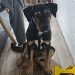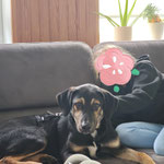 Hier auf meiner Pflegestelle in Kiel läuft es schon richtig gut! Ich habe gelernt, dass der Staubsauger gar kein Monster ist und dass Küchen-Geräusche einfach zum Alltag gehören. Auch mit den