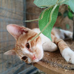 Ich bin extrem menschenbezogen, liebe es zu kuscheln und freue mich über jede Aufmerksamkeit. Auch mit Hunden komme ich gut klar, wenn sie lieb zu mir sind. Bei anderen Katzen bin ich anfangs