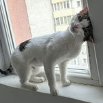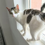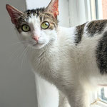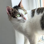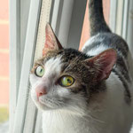 She is friendly with people, sometimes might get sassy. She likes staring out of the window, from the windowsill.
