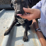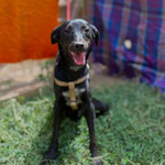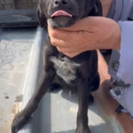Hallo, ich bin Indigo – ein junger, aufgeweckter Rüde mit glänzend schwarzem Fell und einem kleinen weißen Fleck auf der Brust. Gemeinsam mit meinen Geschwistern bin ich in einem bulgarischen