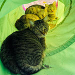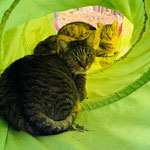 kleinen Erfolge. Vielleicht werden wir irgendwann auch zu Schmusekatzen – so wie Kiwi und Kiwy aus unserer alten Kolonie, die inzwischen im Bett ihrer Menschen schlafen. Vielleicht wird es bei