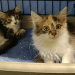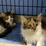 Kitty (tricolor girl) and Noodle (marble tabby-white boy), a brother and sister of around 5 months old. Kitty is extremely social and cuddly and sweet, Noodle is still shy from people 🥺 he will play with Kitty and other cats, but still afraid from human touch. He will need more time to open up 🥺 Kitty is castrated, Noodle still not, both vaccinated, tests negative and ready. They were found in a bag in the city river - they have seen a lot from human agression