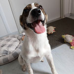 Ich bin verspielt, liebevoll, freundlich und verstehe mich richtig gut mit anderen Hunden. Am liebsten bin ich aber in der Nähe meiner Menschen – ihre Nähe macht mich glücklich, und ich bin immer