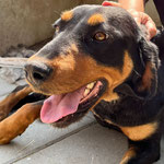 Mit anderen Hunden verstehe ich mich von Anfang an bestens – egal ob in der Pflegefamilie oder unterwegs. Ich bin freundlich, verspielt und manchmal noch ein wenig tollpatschig, deshalb sollten