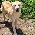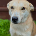 Hallo, ich bin Melly – eine junge Hündin mit samtig-beigem Fell, sanften Augen und einer neugierigen Nase, die überall gerne mal reinschnuppert. Ich bin verspielt, freundlich und bereit, mein