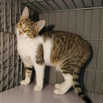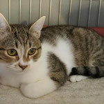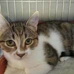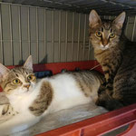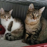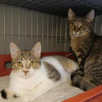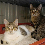 Milo (tabby boy) and Molly (white-tabby girl), a brother and a sister of around 6 months old, very sweet and cuddly, very social. Milo is a bit shyer at first, but when he calms down, he is the sweetest. They want to play, but there is no space in the cage. They were saved from poisoning. Vaccinated, castrated, tests negative, ready