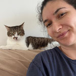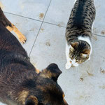 Minutz (white & grey) had a rough start in life. As a tiny kitten, he was rescued together with his siblings and sheltered in an improvised greenhouse. When the pandemic began in 2020 and the