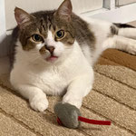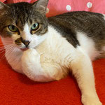 At first very shy, Minutz has slowly learned to trust. Today, he comes for pets, purrs loudly, rubs against your legs, and enjoys being near people. He is still not fully comfortable being held