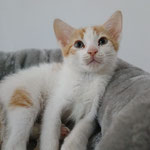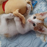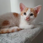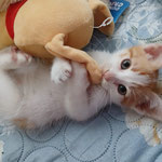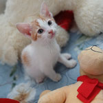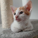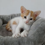 Ich bin Murphy – ein kleiner Kater mit rot-weißem Fell und einer riesengroßen Portion Neugier im Gepäck. In meinem zarten Alter will ich vor allem eins: die Welt entdecken, spielen, toben,