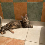 Mein Bruder Tipsy ist ein echter Gentleman – elegant, freundlich und immer bereit für ein gemeinsames Spiel oder eine Kuschelrunde. Er trägt ein klassisches Tabby-Muster in Grau-Braun, kombiniert