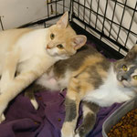 Ollie (rose-white boy) and Ellie (tricolor girl), brother and sister of around 8 months old, extremely sweet and cuddly, playful and cute. Castrated, vaccinated, tests negative, ready