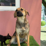 Mit anderen Hunden verstehe ich mich super, egal ob groß oder klein. Ich bin nicht dominant, sondern einfach gerne mittendrin im Geschehen. Selbst mit Katzen komme ich prima klar – manchmal