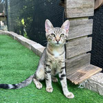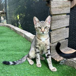 Hallo, ich bin Sammy – ein bezaubernder junger Kater mit einer wunderschönen braun-beigen Tabby-Zeichnung. Zusammen mit meinen Geschwistern Saji, Sile und Soka wurde ich im sicheren Garten einer