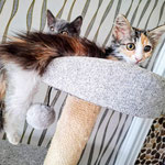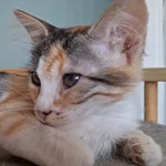Hallo, ich bin Sancia – eine kleine dreifarbige Schönheit, die sich tapfer ins Leben zurückgekämpft hat. Meine Schwester und ich wurden an einer Tankstelle ausgesetzt, einfach zurückgelassen,