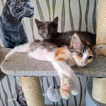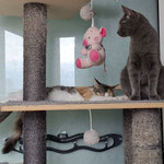 mit einer anderen Katze, zum Beispiel Goshi oder Benito, die uns Babys so fürsorglich begleiten. Alleine möchte ich nicht bleiben, denn das Spielen, Kuscheln und Aufwachsen macht gemeinsam