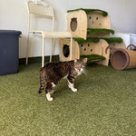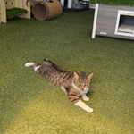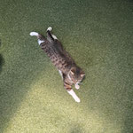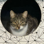 Auch wenn ich schüchtern bin, bin ich ein verspielter Kater! Ich liebe es, mit meiner Spielbahn zu spielen und mit der Pfote den Ball hin und her zu stupsen. In solchen Momenten kann man sehen,