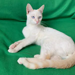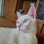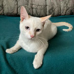 Hallo, ich bin Snow – ein wunderschöner Kater mit weiß-beigem Fell und strahlend blauen Augen. Mein Leben war bisher nicht leicht, denn ich musste eine schwere Virusinfektion überstehen. Doch ich