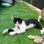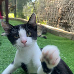Hallo, ich bin Soka – ein junger, schwarz-weißer Kater mit viel Energie und noch mehr Neugier. Gemeinsam mit meinen Geschwistern Sammy, Saji und Sile wurde ich im sicheren Garten einer