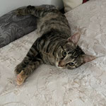 Als junge Katze bringe ich jede Menge Energie und Freude mit. Alles, was sich bewegt oder glitzert, wird sofort zu meinem Spielzeug – ob ein Bällchen, ein raschelndes Papier oder ein
