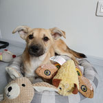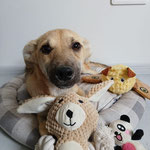 mich gerettet, versorgt und in Sicherheit gebracht. Jetzt lebe ich mit anderen Hunden zusammen. Ich bin noch ein bisschen unsicher, aber wenn ich andere Hunde sehe, blühe ich richtig auf. Ich