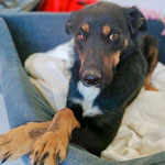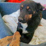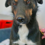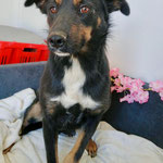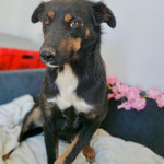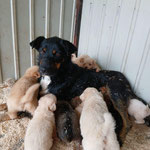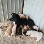 Terry, female, 51 cm, spayed, 2-3 years old she is a very gentle, calm and kind soul she accepts all dogs, people and she breastfed 17 puppies, came with her own babies to us but then took care of so many orphans. Child tested with my daughter. Terry is a great family dog, patient and humble but happy