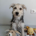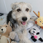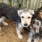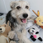 Trotz meiner ruhigen Art bin ich natürlich auch verspielt. Ich bin ja schließlich noch ein Welpe! Wenn wir draußen miteinander toben dürfen, blühen wir alle auf. Ich verstehe mich gut mit anderen