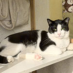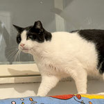 He is calm, friendly with other cats, a bit shy with people. He is neutered.