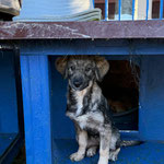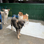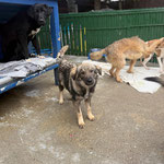 They were found in our village. Here she was with their mother was taken to the shelter and they came to us. On this street people gave them meat with nails so that they would die.